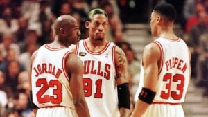 Which Bulls player won 6 NBA titles with the team in the 1990s?